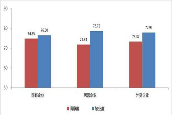 “國企員工滿意度高,敬業(yè)度低?!比涨埃袛?shù)據(jù)顯示,相對于民營企業(yè)和外資企業(yè),國有企業(yè)的員工對公司的滿意度最高,但卻是最不敬業(yè)的。而民營企業(yè)對公司的滿意度最低,卻是最敬業(yè)的。